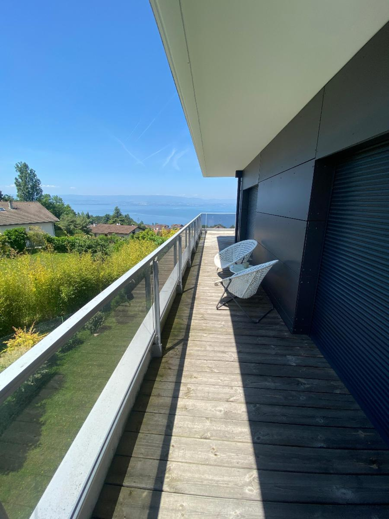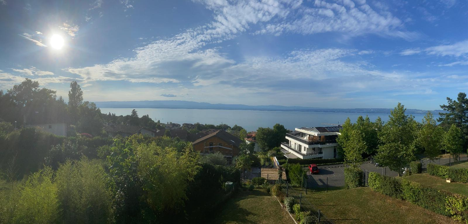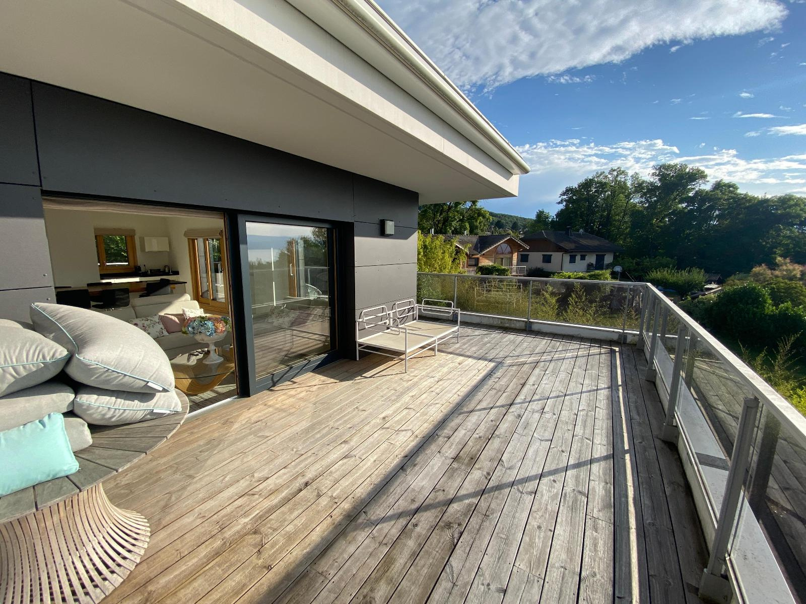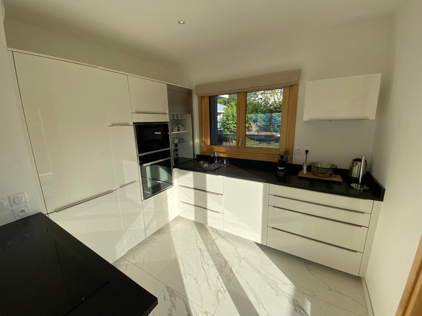 Entrée/couloir, magnifique cuisine équipée ouverte sur séjour avec accès terrasse de 36.70 m² et vue exceptionnelle et panoramique lac, 3 chambres dont 1 avec accès douche/wc/dressing, 2ème douche et 2ème wc.