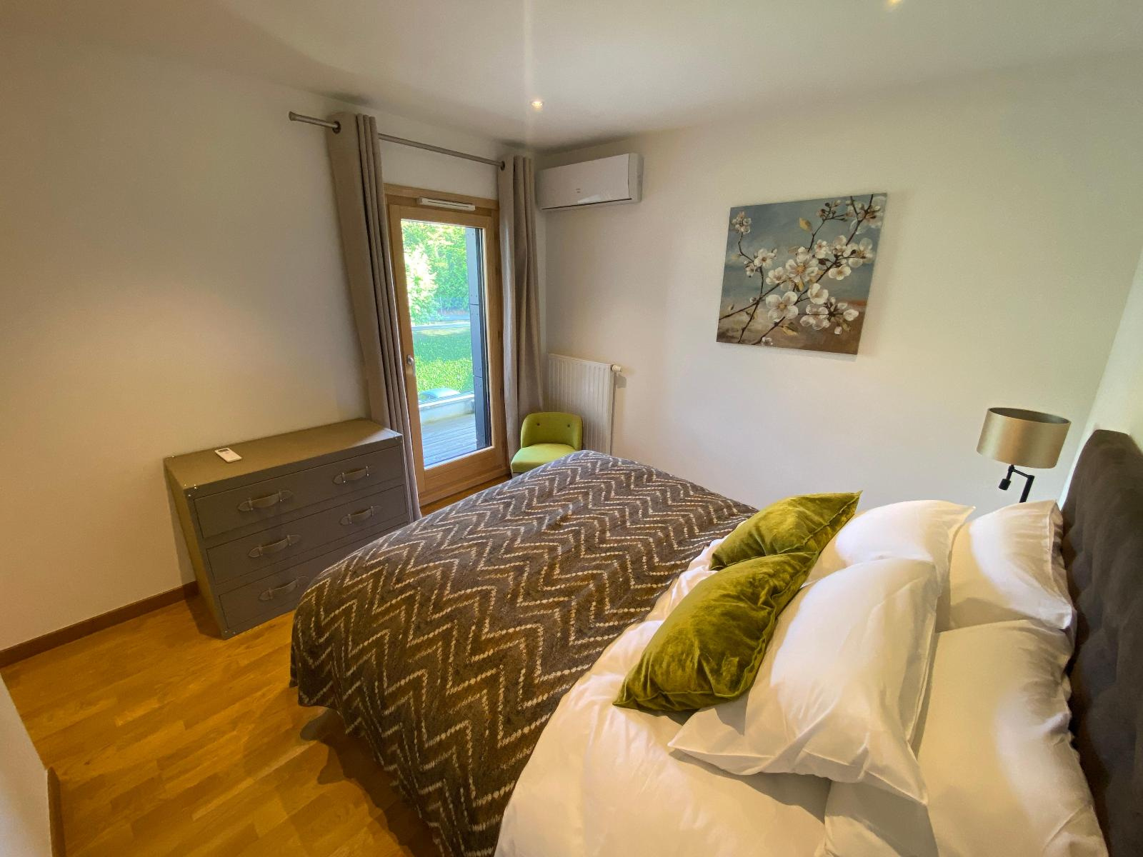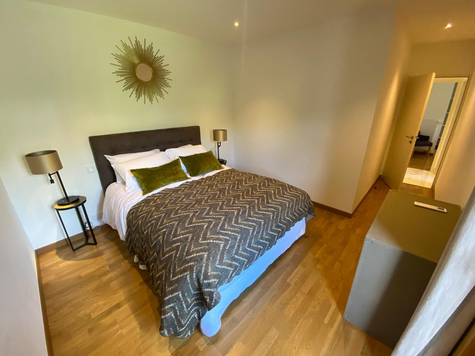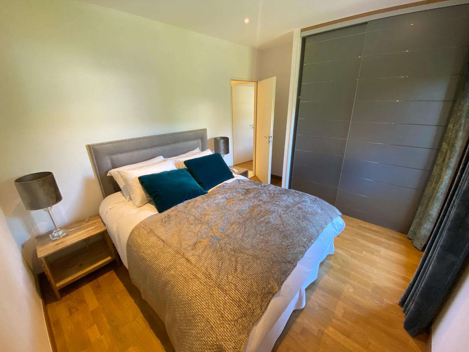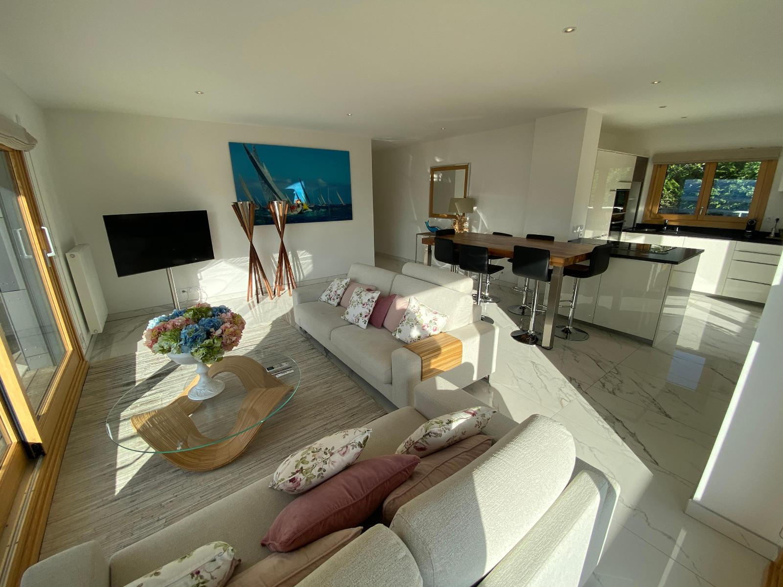 Entrée/couloir, magnifique cuisine équipée ouverte sur séjour avec accès terrasse de 36.70 m² et vue exceptionnelle et panoramique lac, 3 chambres dont 1 avec accès douche/wc/dressing, 2ème douche et 2ème wc.