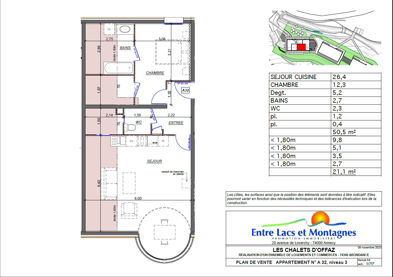 L'agence BARNOUD vous propose ce nouveau programme en cours de livraison. Situé au cœur du charmant village d’Abondance, dans la vallée du Chablais, le programme neuf Les Chalets d’Offaz vous propose ce T2 de 50,50 m², vendu en pack prêt à décorer. Un appartement idéal pour profiter d’un cadre de vie paisible entre montagnes et authenticité savoyarde.