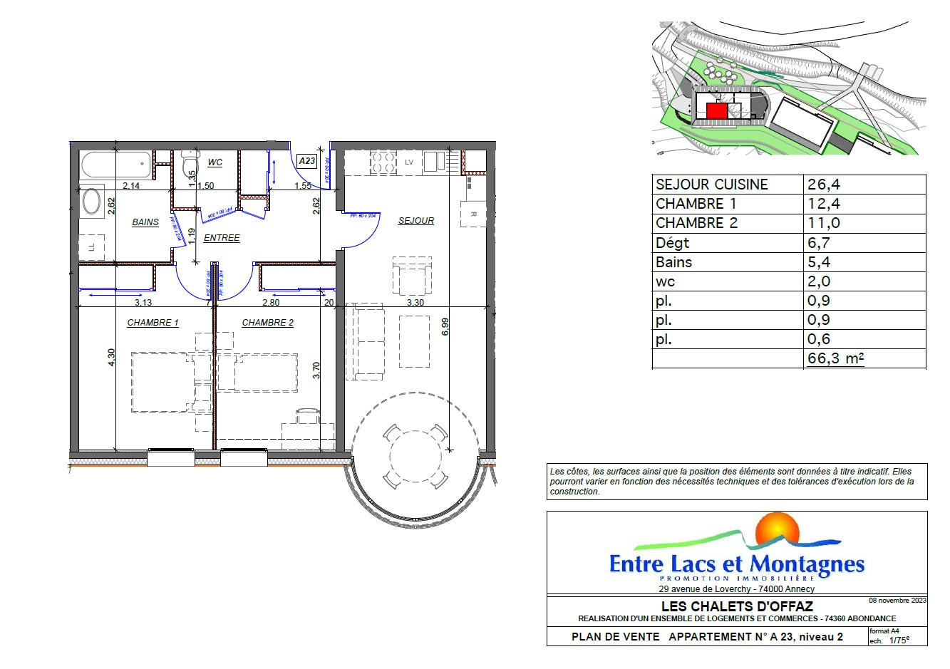 L'agence BARNOUD vous propose un programme neuf en cours de livraison. Au cœur du charmant village d’Abondance, dans la vallée du Chablais, découvrez le programme neuf Les Chalets d’Offaz. Cette appartement T3 de 66.30 m², vendu en pack prêt à décorer, offre un cadre de vie exceptionnel alliant authenticité savoyarde et confort moderne.