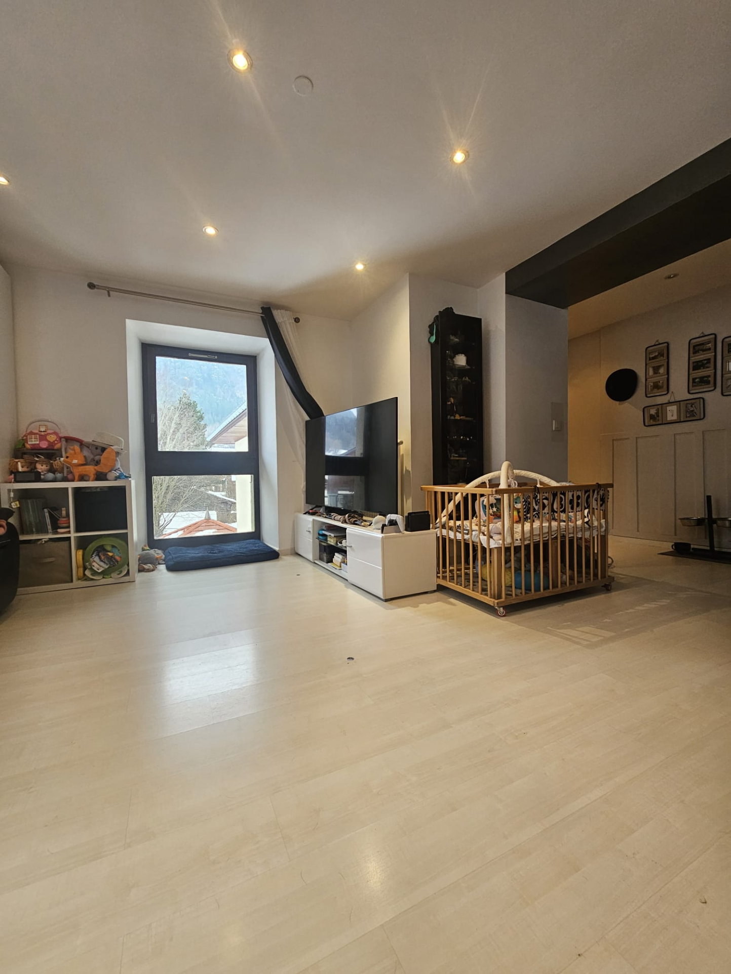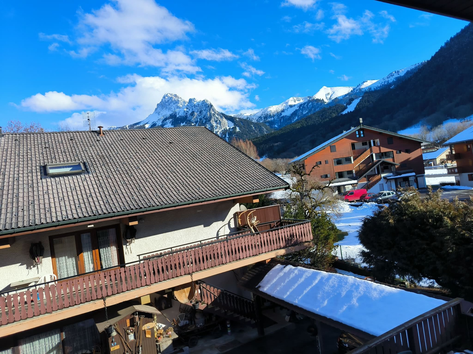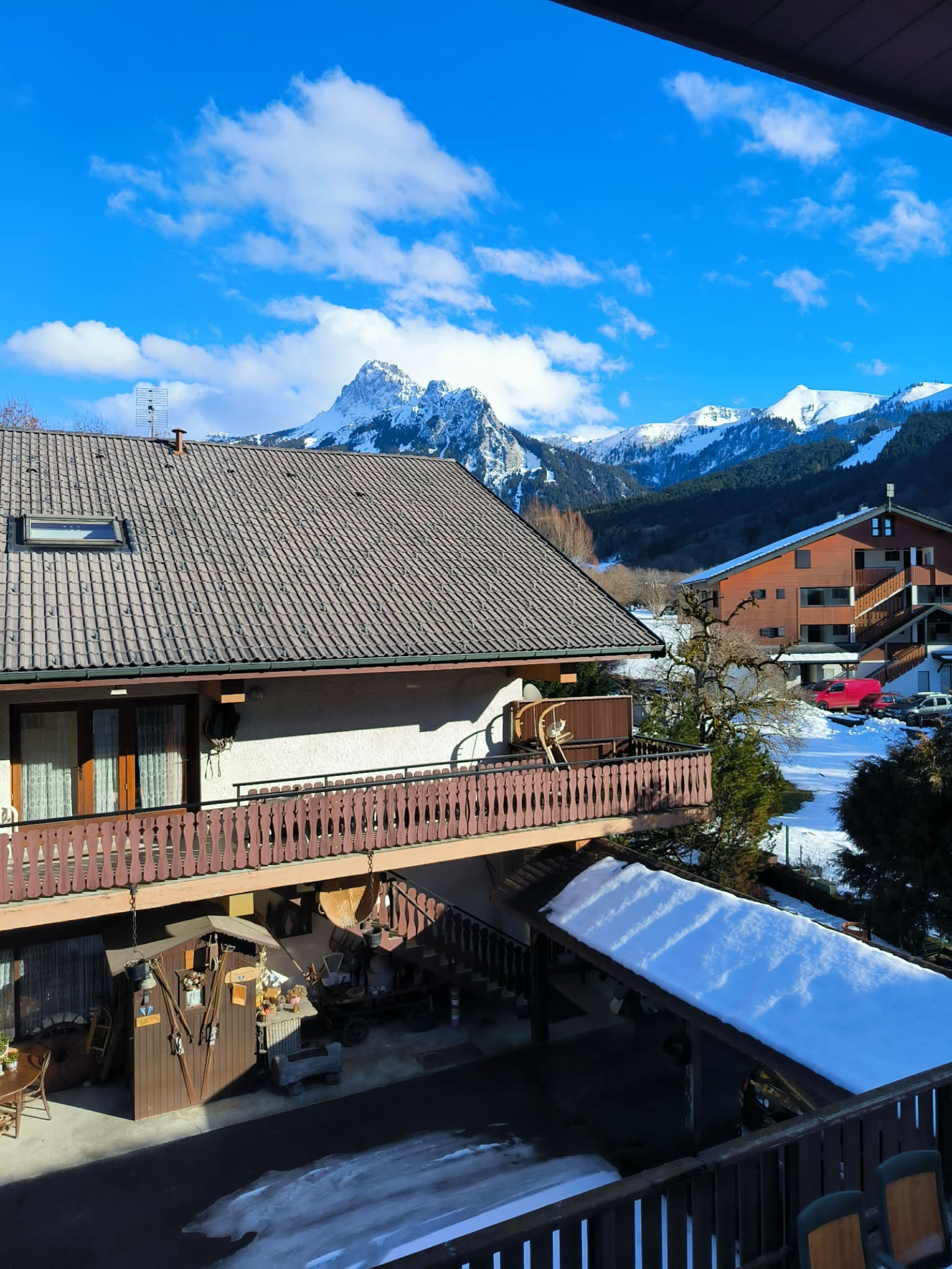 Cave en rez-de-chaussée, local à skis et place de parking privative complètent ce bien. Chauffage collectif (chaudière fioul) et production d’eau chaude individuelle électrique.