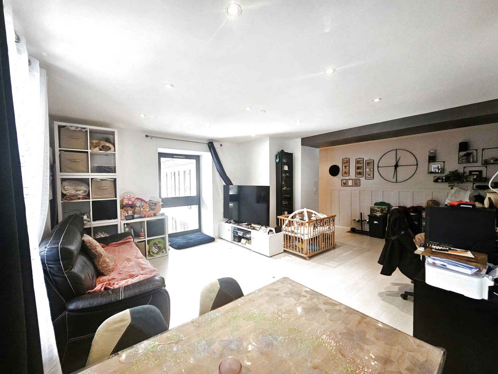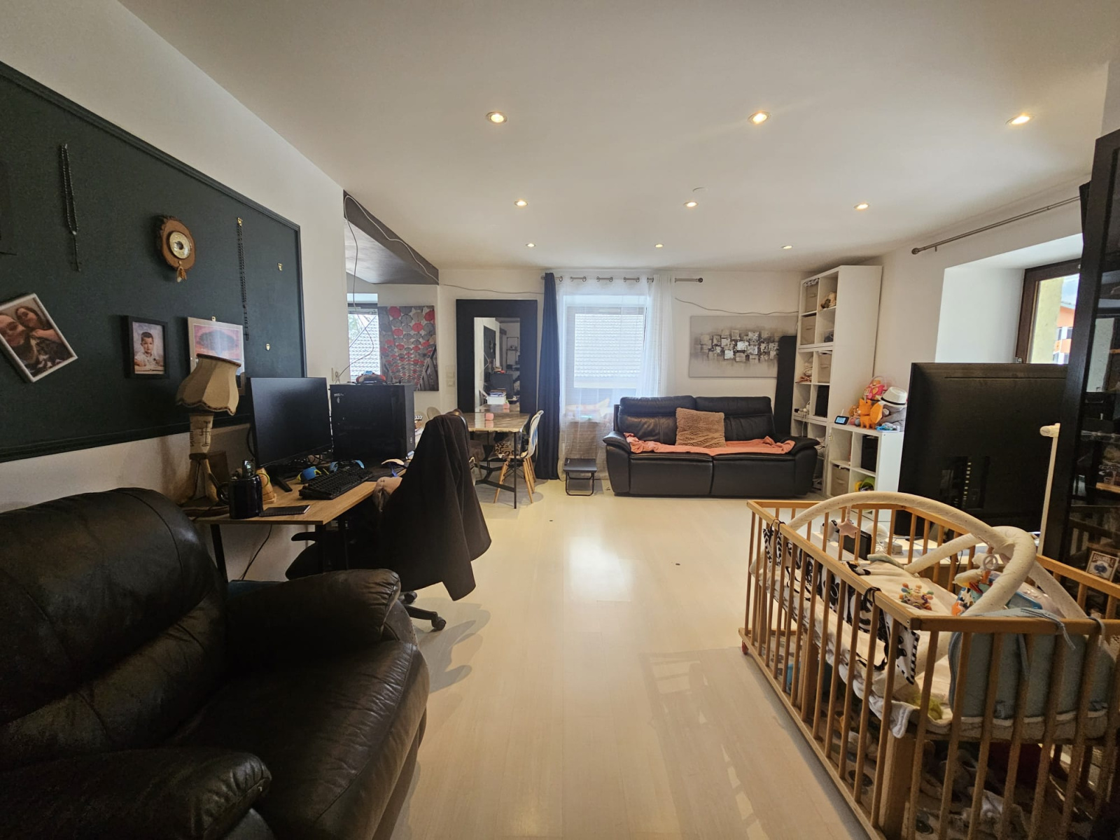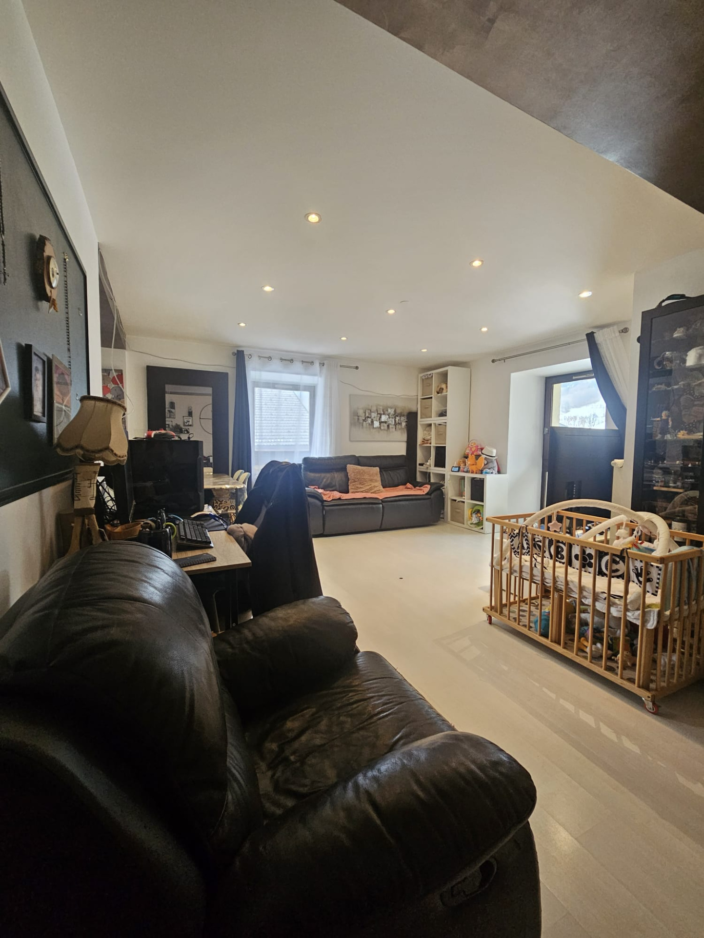 Cave en rez-de-chaussée, local à skis et place de parking privative complètent ce bien. Chauffage collectif (chaudière fioul) et production d’eau chaude individuelle électrique.
