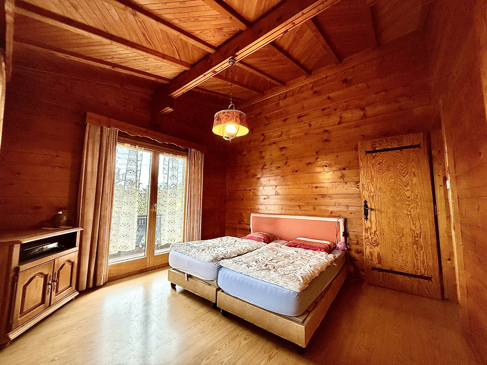 Véritable construction en madrier, ce bien rare offre un aménagement fonctionnel et baigné de lumière, idéal pour une résidence principale ou un pied-à-terre à la montagne.